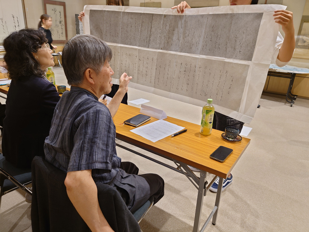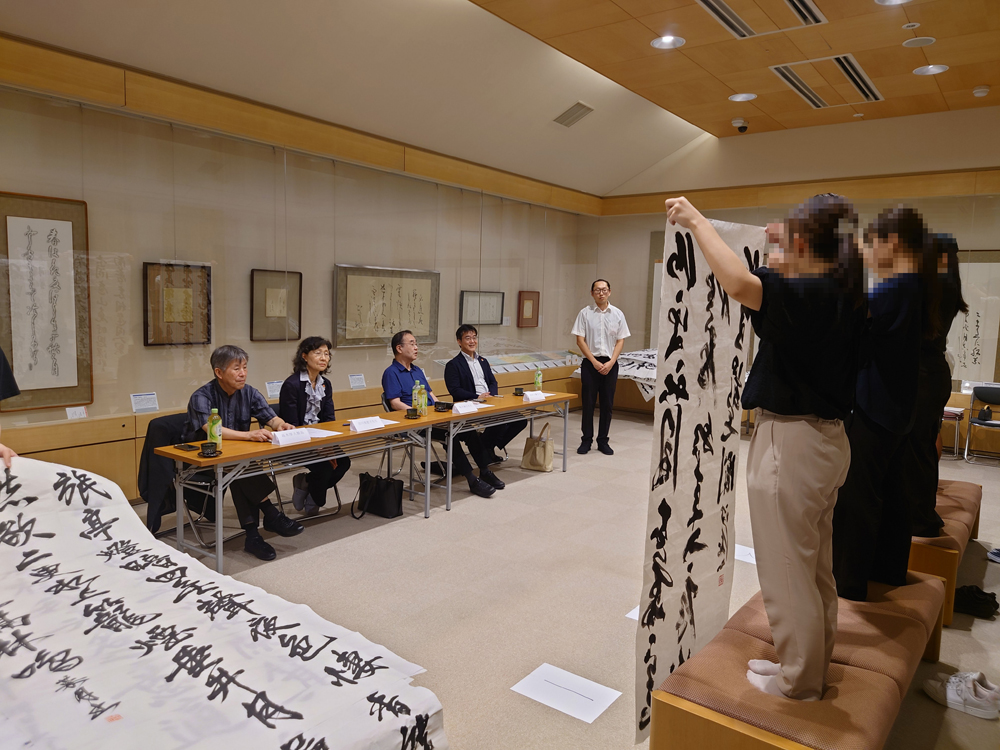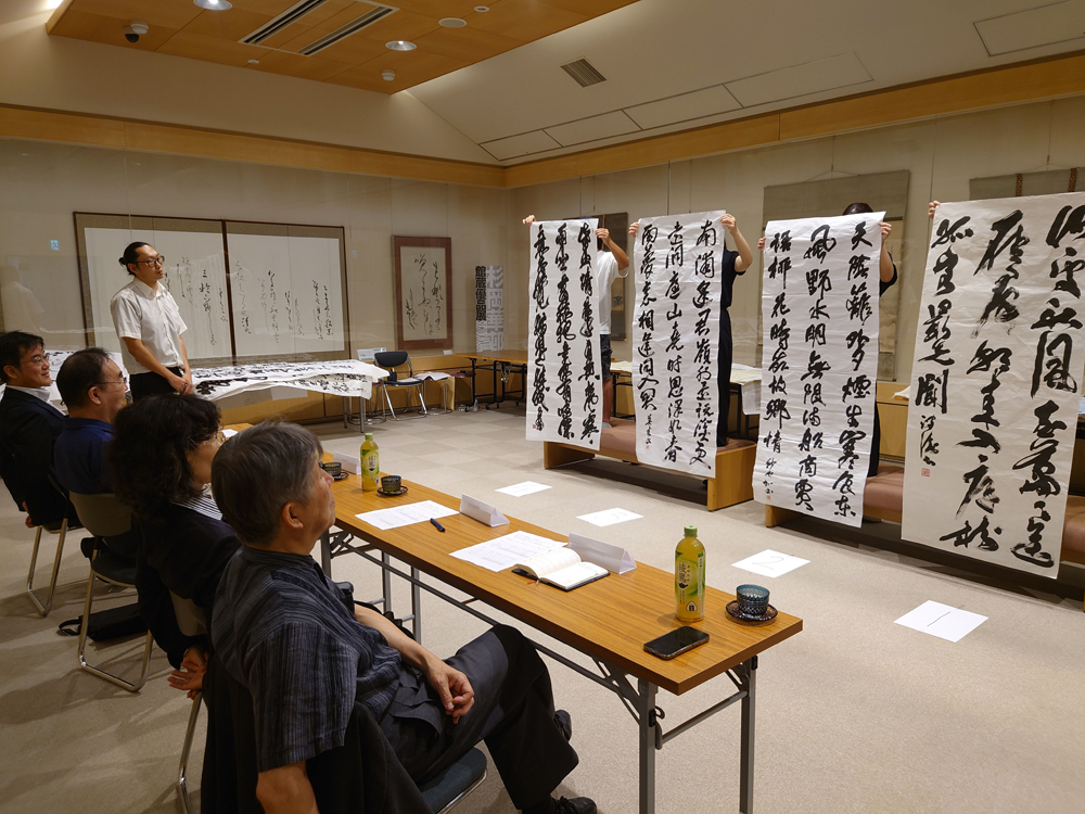 | ●第1回 なら華邨賞・1次審査について 2025年8月12日、奈良市杉岡華邨書道美術館にて「なら華邨賞」の第1次審査が行われました。 なら華邨賞第1次審査・審査員 福光幽石 (日展会員・奈良教育大学名誉教授) 吉川美恵子(日展会員・奈良教育大学名誉教授) 西村大輔(奈良教育大学准教授) 高木厚人(日展会員・大東文化大学名誉教授・奈良市杉岡華邨書道美術館館長) |